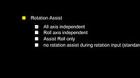 Rotation assist now has 4 modes. THese modes are accessible from the options menu "other ship settings". - all axis independent : each rotation axis will self-stabilize when no input is given to that...